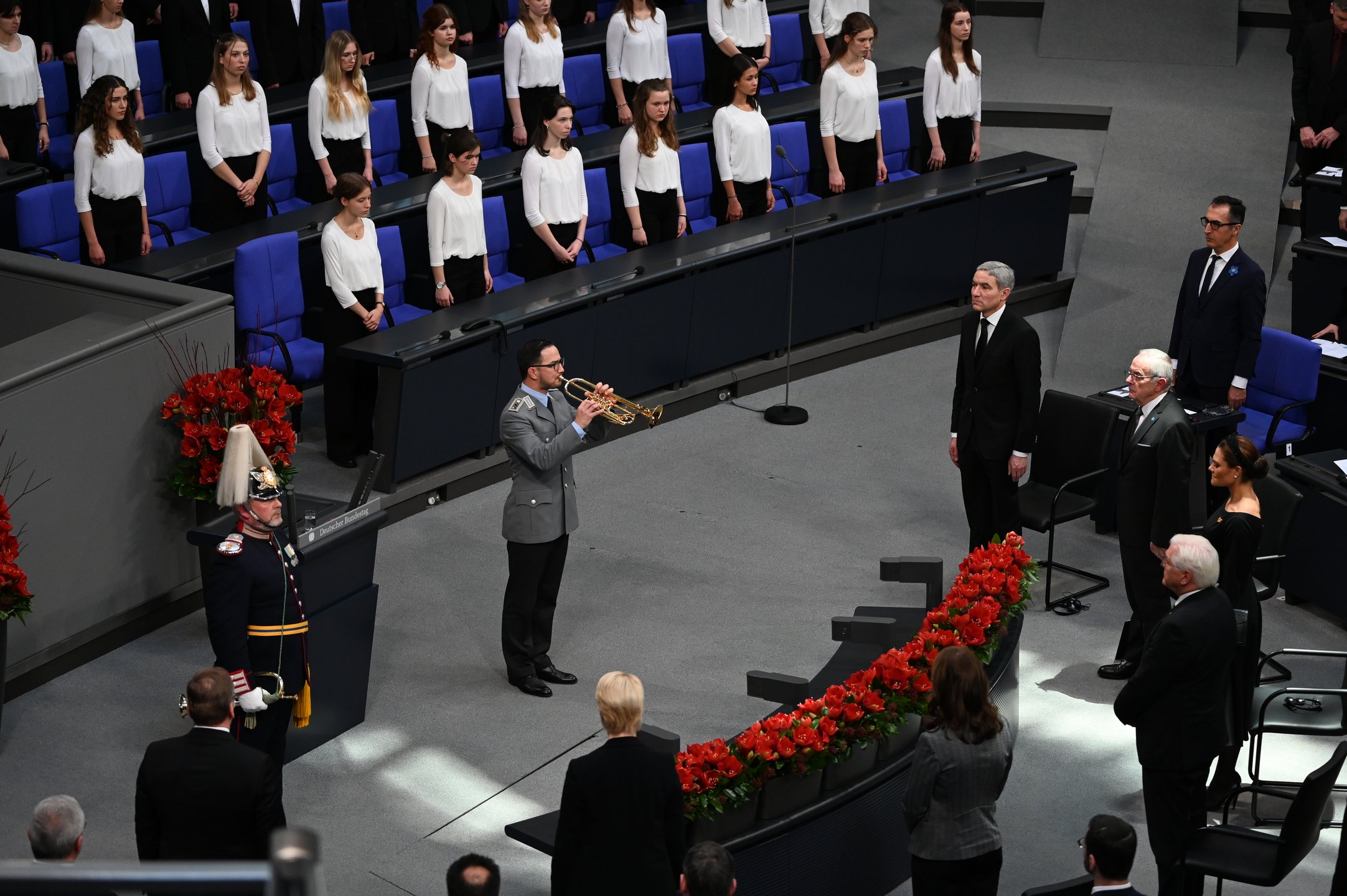 Die Gäste im Saal und Tausende an den Fernsehschirmen hörten das Totengedenken, das Bundespräsident Frank-Walter Steinmeier verlas, die Totensignale, die Europahymne und die Nationalhymne, mit der die wichtigste Veranstaltung des Volksbundes des Jahres zu Ende ging.