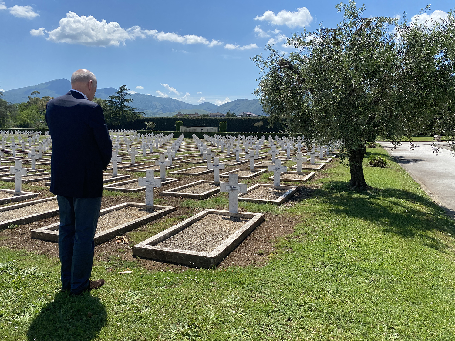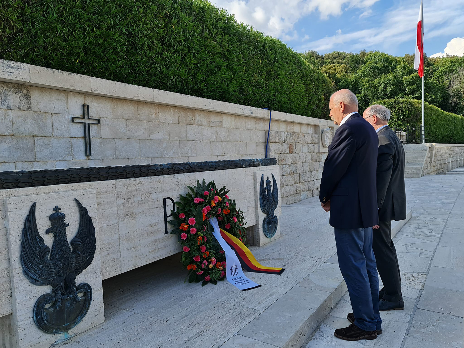 Mit einer großen Gedenkveranstaltung auf seiner Kriegsgräberstätte südlich von Rom hat der Volksbund Deutsche Kriegsgräberfürsorge e. V. der Opfer der Schlachten um den Monte Cassino gedacht. Sie waren vor 80 Jahren – am 18. Mai 1944 – zu Ende gegangen. Zahlreiche Politiker, Würdenträger, Angehörige und Vertreter anderer Nationen nahmen an der Zeremonie mit Kranzniederlegungen teil. Einen Tag zuvor haben Hartmut Tölle, Mitglied des Bundesvorstandes im Volksbund und Rainer Grygiel, der Beauftragte für die Zusammenarbeit mit der Bundeswehr in Niedersachsen und Bremen mit stillen Kranzniederlegungen auf den sechs Soldatenfriedhöfen im Raum Cassino der Opfer gedacht.
