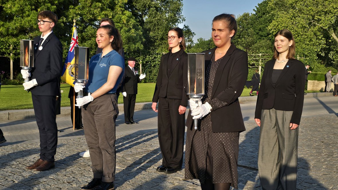 Vom 3.- 6. Juni 2024 fanden anlässlich des 80jährigen Gedenkens an die Alliierten-Landung in der Normandie verschiedenste Gedenkveranstaltungen statt. Der Volksbund organisiert u.a. Gespräche zwischen hochrangigen politischen Vertretern und jungen Menschen. Dabei wurde erörtert, woran die nachfolgende Generation eigentlich gedenken möchte oder was Erinnern als europäische Aufgabe bedeutet und welche Aufgaben sich damit für Demokratien in der heutigen Zeit stellen. Um diese Fragen und andere Themen ging es beim Treffen mit der Oberbürgermeisterin der Stadt Aachen sowie am darauffolgenden Tag mit dem deutschen Botschafter in Brüssel. Den Abschluss bildete die feierliche Übergabe der Flamme der Erinnerung an die nachfolgende Generation sowie das Verlesen der Namen von Kriegstoten aus europäischen Ländern.