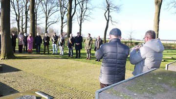 Die Führung über die Kriegsgräberstätte endete mit den mahnenden Worten aus der Gedenkrede des Präsidenten des Volksbundes anlässlich der Gedenk- und Einbettungsveranstaltung von 84 unbekannten deutsche Soldaten im Oktober 2019.